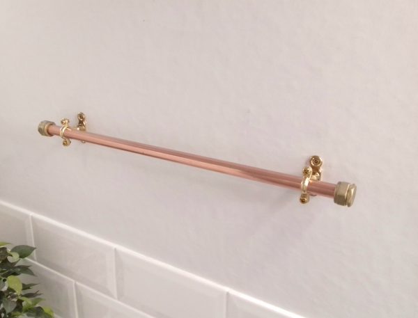 Handcrafted using 15mm, pure copper pipe and fittings & complimented with brass wall fixtures and end fittings.